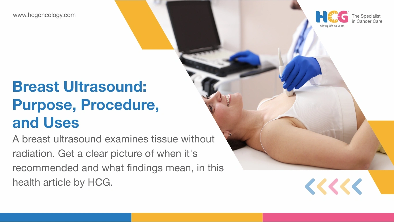HCG Cancer Hospital places breast ultrasounds within a fully integrated imaging program, where radiologists work directly alongside oncologists and surgeons on every complex finding. Patients arrive carrying a question. They leave with a documented, clinician-reviewed answer and a clear pathway forward, supported at every step by HCG's comprehensive cancer care network.