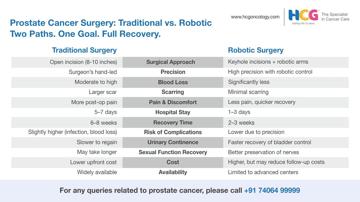 Several patients experience faster recovery and a quicker return to daily activities. The outcomes of robotic surgery for prostate cancer related to cancer control, sexual function, and urinary continence are more favorable compared to traditional open surgery.