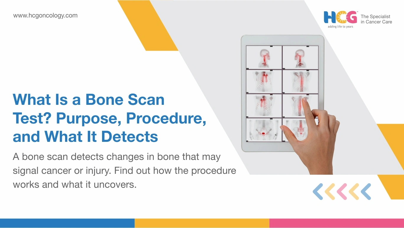 At HCG Cancer Hospital, nuclear medicine specialists interpret bone scan findings alongside blood markers and patient history before drawing any diagnostic conclusions.