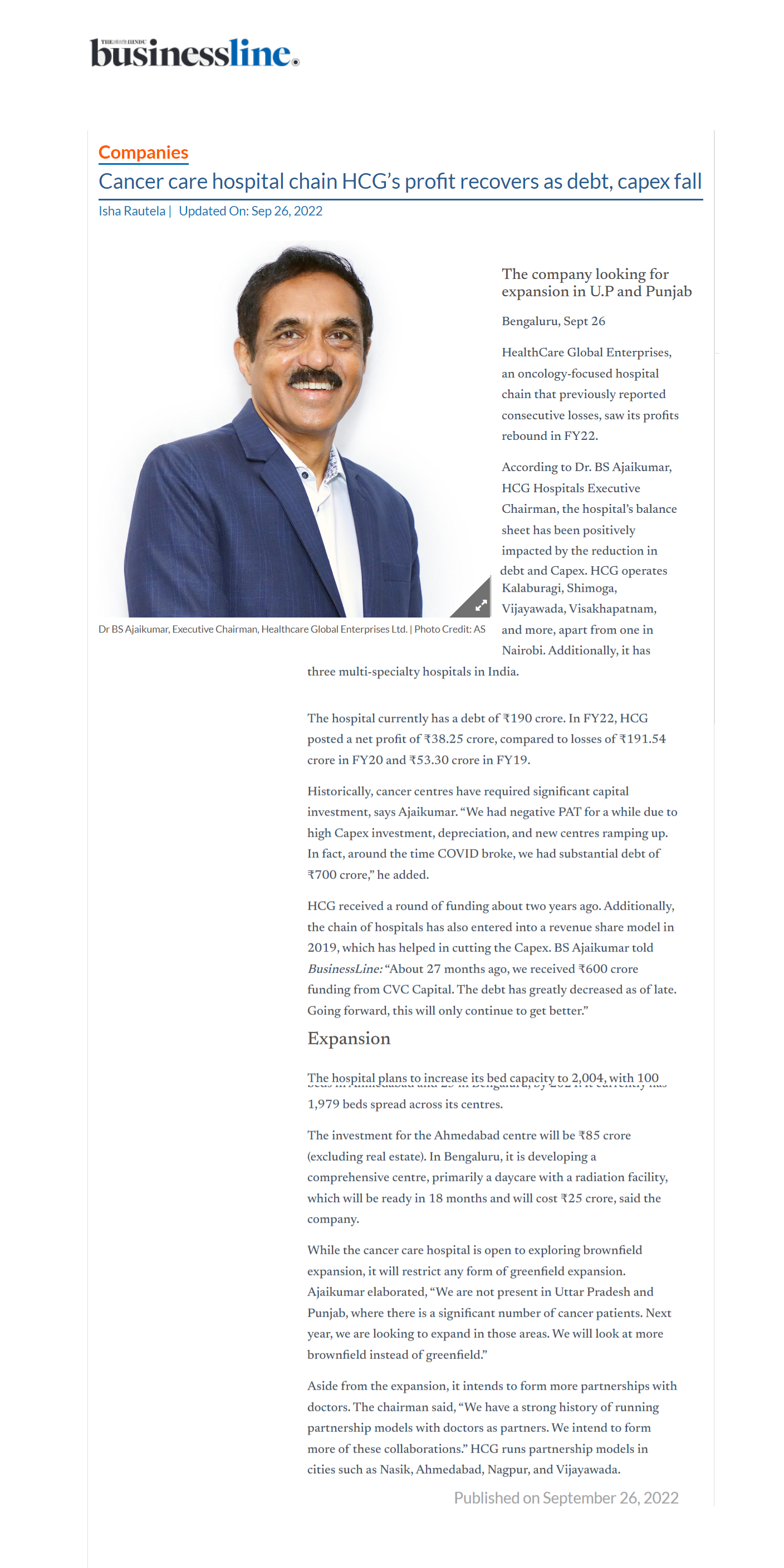 News Update: An exclusive interview Dr. BS Ajaikumar, our Executive Chairman was featured in The Hindu Business Line publication